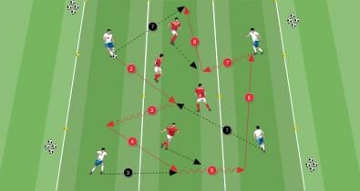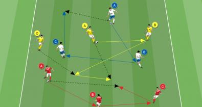 Motiváló gyakorlat, amivel a labdát birtokló csapatot folyamatos mozgásra szoktathatjuk, így téve játékunkat a lehető legkiszámíthatatlanabbá az ellenfél csapata számáraTaktika