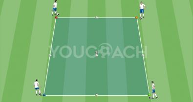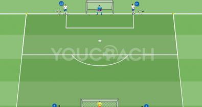 Labdatovábbítás és kettős kapura rúgás: irányított labdaátvétel után, majd frontálisan szemből közelítve a labdáhozOldalak