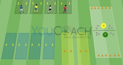 Ezzel a játékkal a körülmények behatárolt térben történő gyors változására eddzük az ifjú focistákatFizikai felkészítés