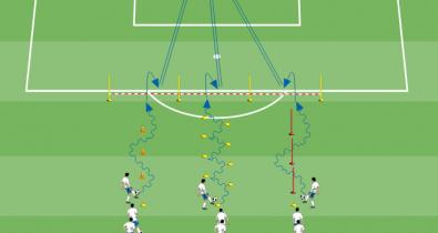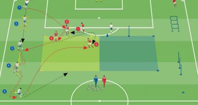 Befejezési gyakorlat az ellenfél kapujának közelében keresztlabdából vagy szélről történő beívelésből, ahol a támadási terület kiválasztása a labda földet érési pontja alapján történikTaktika