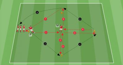 Fejlesszük az átlós passzokat a labda leadásához és a mélységi játékhoz, valamint a háromszögeléseket a gyémánt alakú munkaállomássalTaktika