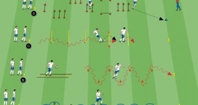 Tehcnikai gyakorlás a labdavezetésre és labdatartásra kognitív elemekkel: vizuális képességek, reakcióképesség, tér-időbeni tájékozódási képességOldalak