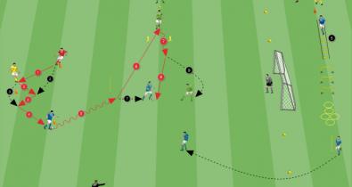 Kerüljünk ki győztesen a 2 az 1 elleni és a 2 a 2 elleni helyzetekből, amiket oldalsó partjátékosok támogatnak a kapura lövés céljából, miközben az átmeneteken dolgozunkOldalak