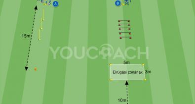 Technikai-motoros útvonal labdavezetéssel és labda nélkül, lezáró elrúgássalTechnika