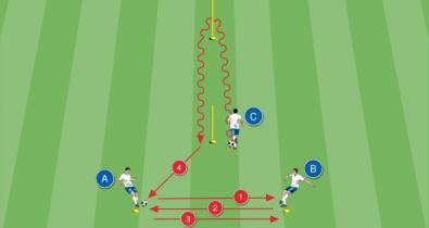 1 az 1 elleni szituáció, amely lehetőséget biztosít különböző technikai és koordinatív elemek elemzésére és fejlesztéséreCoachpedia