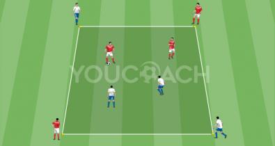 A gyakorlat az 1 az 1 elleni játékszituáció különböző változatait kínálja gyakoroltatva a cselezést, a fizikai küzdelmet és a befejezést.Oldalak