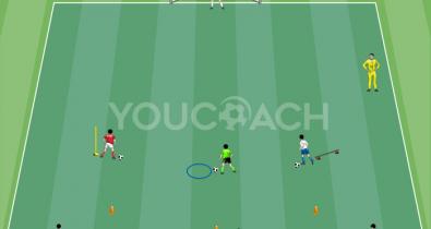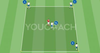Egyszerűsített 1 az 1 elleni játékszituáció az átadások, a labdaátvétel és az üres területre mozgás/emberfogás fejlesztésére a párharcok soránOldalak
