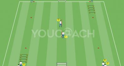 Különféle labdarúgás-specifikus elemet eddzünk ezzel a gyakorlattal, többek között a gyorsaságot, a kapura lövést és az irányított labdalevételtTaktika