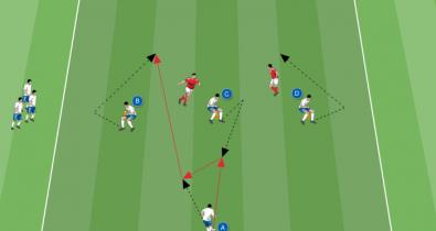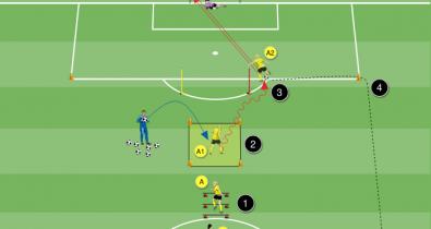 Ezzel a gyakorlattal fejleszthetjük a játékosok szabad területre mozgását az ellenfél emberfogásának elkerülése céljábólTaktika