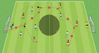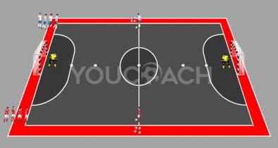 A kispályás fociból származó gyakorlat, amely a gyors és kiszámíthatatlan kapura rúgásra, a gyors döntési képességre és a perifériás látásra összpontosítTaktika