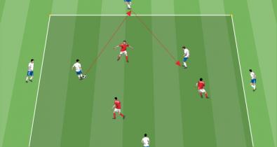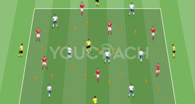 Egyszerűsített labdabirtoklási szituáció, amellyel a passzolást és a szabad területre mozgást eddzükTechnika