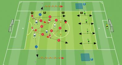 1 az 1, valamint 2 az 1 elleni helyzet a futás közbeni cselezés, a játékfantázia és a létszámfölényes szituáció kihasználásának fejlesztésére a támadó fázisbanTaktika