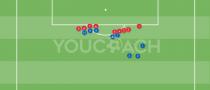 - A gyakorlás során az a cél, hogy az egyik kiskapun keresztül áthaladó passzolást végezzenek a támadójátékos beékelődésére (példa az ábrán)