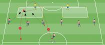 - Biztassuk a lövő játékost arra, hogy a labda elrúgása után gyorsan fusson a kapuba a szerepcseréhez, miközben folyamatosan szemmel tartja az akcióba lendülő társ labdáját