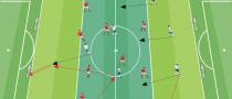 Koordinációs-motoros gyakorlatsor a labdavezetés és labdakezelés fejlesztésére, 2 a 2 elleni játékszituációval befejezve |