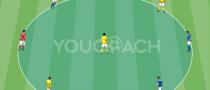 Edzésjáték a labdabirtoklás és a labda feletti uralom fejlesztéséért 2 az 1 elleni szituációban |