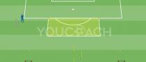 - A kapus keresztmozgással indul a központi átjáró felé, és bemutatja az első védést saját jobb oldala felé vetődve