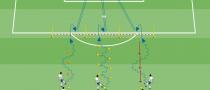 Tányérbóják segítségével alakítsunk ki egy 15x15 méteres négyzetet. A négyzeten belül, tetszésünk szerint rendezünk el különböző edzésfelszereléseket (például bójákat, karikákat, jelzőbójákat, magas és alacsony gátakat, stb.). Nagyjából 7 méterre a négyzettől állítsunk fel egy kapus által védett kaput. A kapushoz közelebbi oldal felezőpontjánál két tányérbója segítségével alakítsunk ki egy 3 méter széles átjárót, ami célként szolgál. Játékosainkat osszuk két, egyenlő létszámú csapatra, és állítsuk fel őket a négyzet két, kaputól távolabbi csúcsában. Minden játékos egy labdát kap.