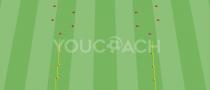 Mozgás közbeni folyamatos ellövések sorozata a gyorsasági állóképesség és kapura rúgás edzésére |
