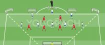 Ebben a szituációs gyakorlatban 2 a 2 elleni játékot játszatunk különböző, előre meghatározott célokkal |