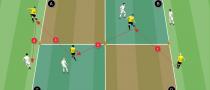 Technikai-motoros szakasz labdavezetéssel + 1-1 elleni szituáció kapura rúgással és átmenettel |
