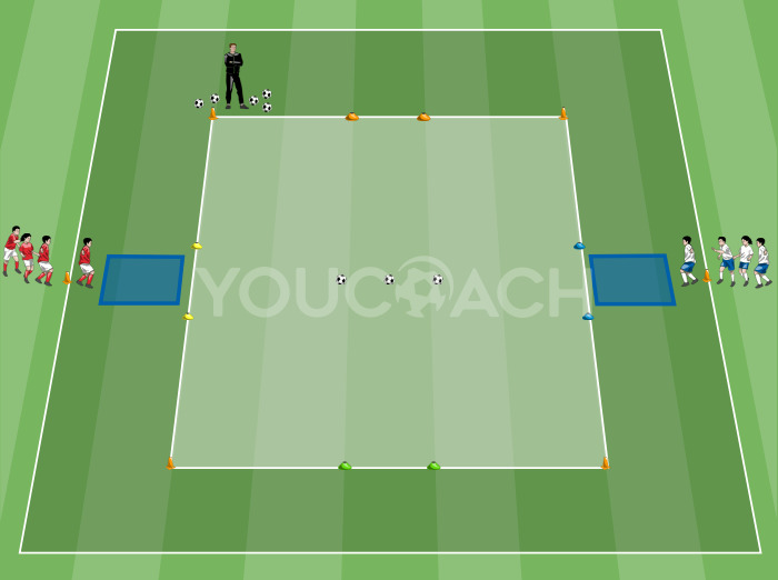 Koordinációs képességek - Technikai-motoros gyakorlat labdavezetés közbeni kognitív ingerekkel és 1 az 1 elleni párharc -