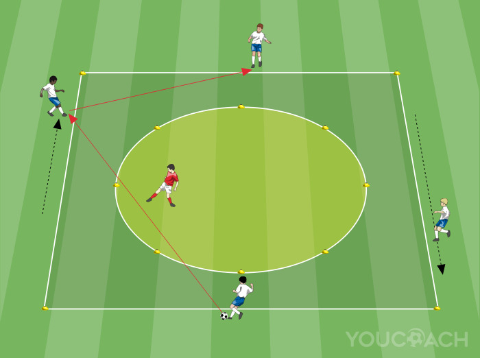 Átmenetek - Nagy intenzitású labdabirtoklás létszámfölényben 4-2 ellen az aerob kapacitás, a gyorsasági állóképesség és az átmenetek edzésére -