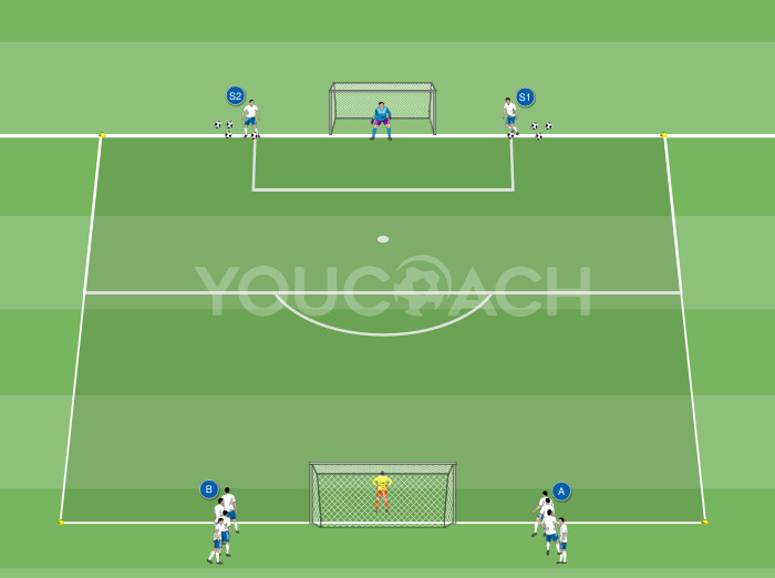2-2 ellen - 2-2 elleni szituációban keresztlövésből kapura rúgás edzése
